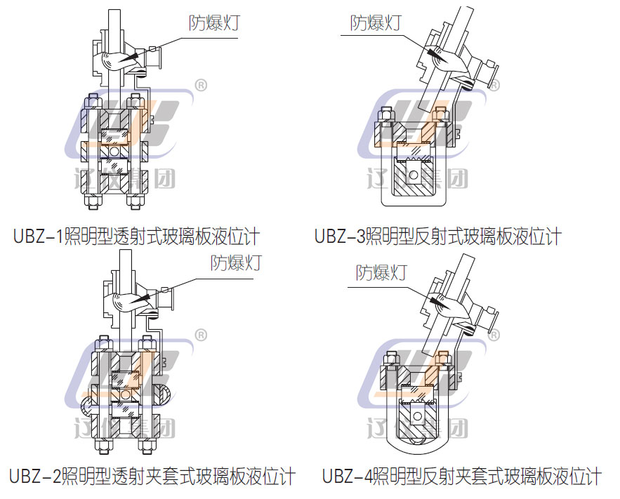UBZ系列照明型玻璃板液位計是在UB-1、2、3、4及UBS-1、2、3、4基礎(chǔ)上,配有防爆照明設(shè)施的液位計,它可以在室內(nèi)或夜間直接指示密封承壓容器和開口容器中介質(zhì)液位高度。