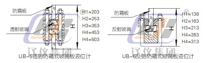 ●UB-6反射防霜式玻璃板液位計用于測量因低溫無色透明介質(zhì)造成外表凝霜場合的液位
