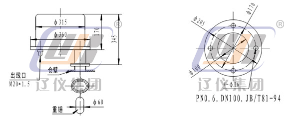 UL-3型物位開關(guān)采用擺復(fù)式傳動(dòng)系統(tǒng)。擺動(dòng)軸的軸端對(duì)稱掛有重錘及配重砣。無物料時(shí),重錘失重,彈簧拉力克服了配重砣的重力使軸靜止,電機(jī)使測(cè)量撥叉張開動(dòng)作,微動(dòng)開關(guān)動(dòng)作,發(fā)出料面信號(hào);若物料夾住重錘下行,亦可使拔叉張開動(dòng)作,發(fā)出料面信號(hào),同時(shí)限位座靠在底板上,限制重錘繼續(xù)下行,使儀表內(nèi)部免受沖擊及拉力,切斷電機(jī)電源。
